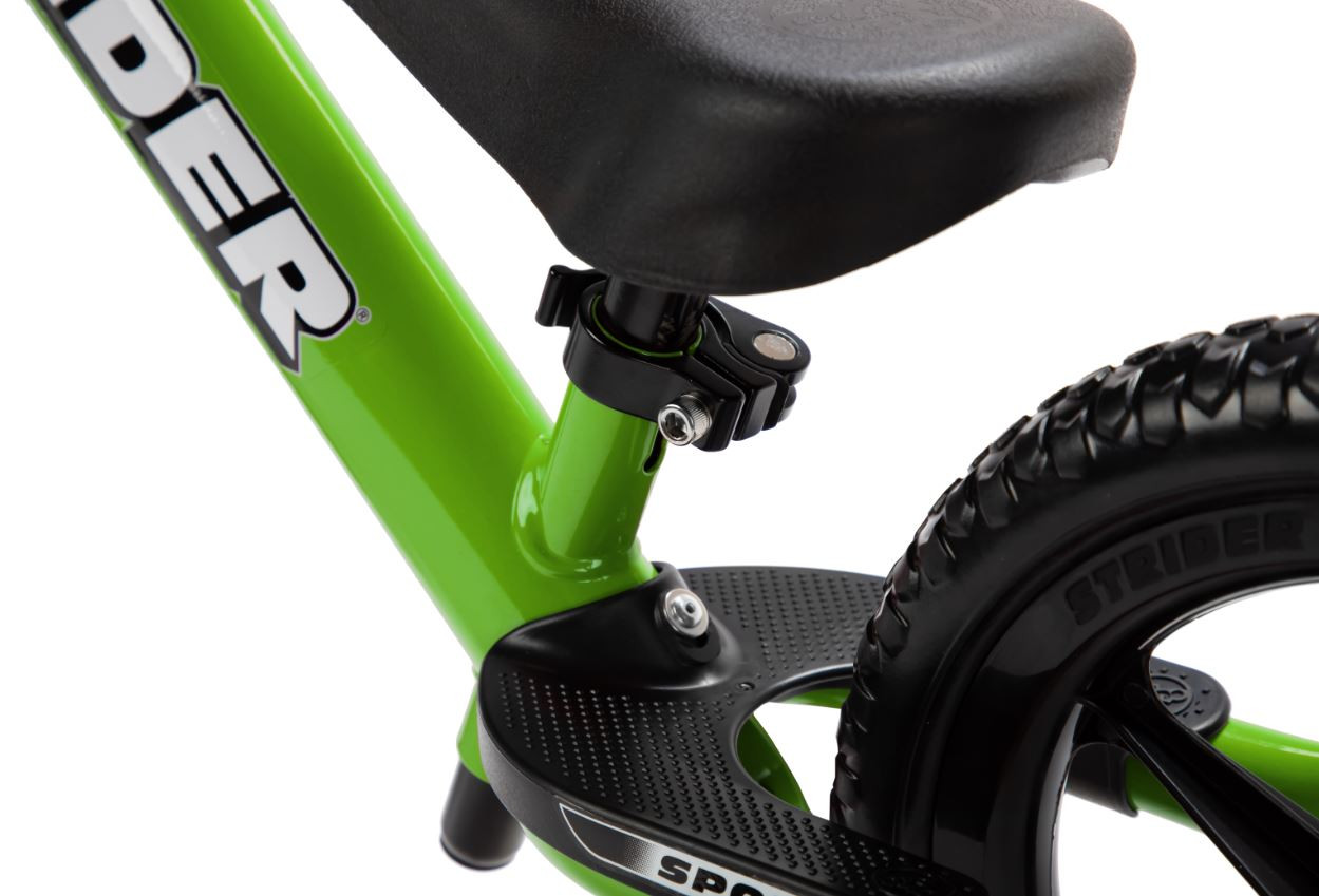 La12 Sport es nuestro mejor modelo completo y una bicicleta perfecta para llevar a su hijo desde pequeños pasos hasta grandes zancadas, todo sin necesidad de un juego de herramientas (asiento y manubrio que se ajustan sin herramientas y llantas que nunca se pinchan). La Strider Sport tiene un rango de altura del asiento de 28 a 48 cm (11 a 19 pulg.), lo que significa que se adapta a una gran variedad de longitudes de entrepierna (30 a 51 cm).